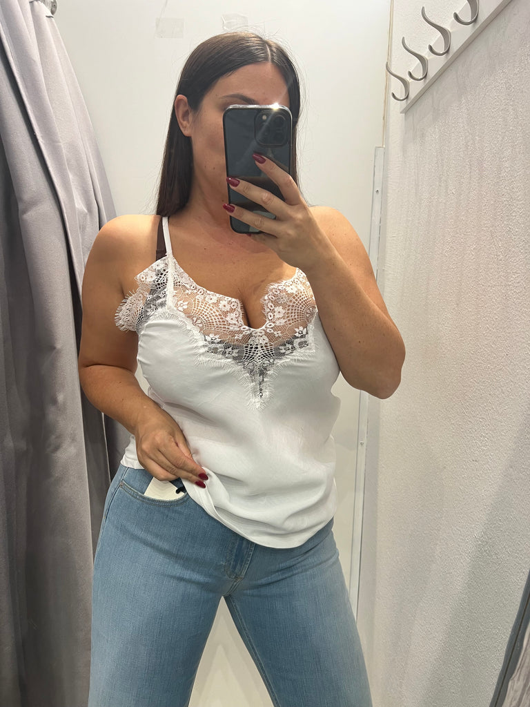 HaveOne•Canotta spallini con pizzo•Bianco