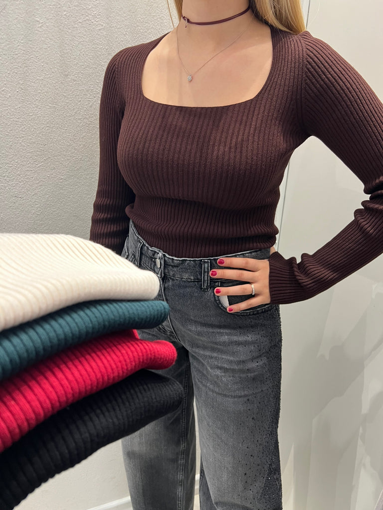 KONTATTO•Maglioncino costine scollo quadro•Più colori