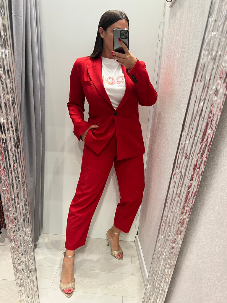 ViCOLO•Pantalone basic rosso con elastico e bottone