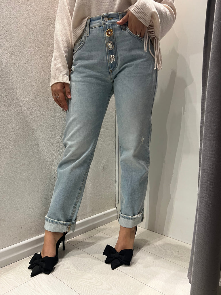 ViCOLO•Jeans Zoe bottoni gioiello lavaggio chiaro